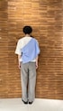 ご覧いただきありがとうございます! ブルーストライプのシャツを使ったたすき掛けコーデです。 こなれ感を出せますし気温に合わせて羽織れるのでこの時期おすすめです!