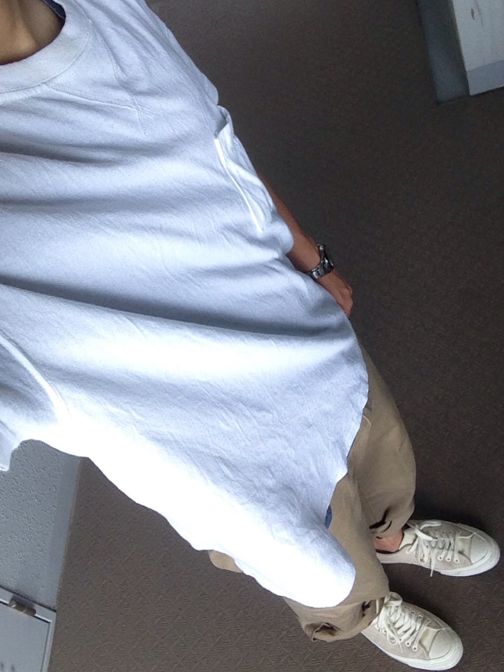 ゆったり無地の白シャツとワイドめのパンツでゆるっと… こんな感じで学校行っております^ ^