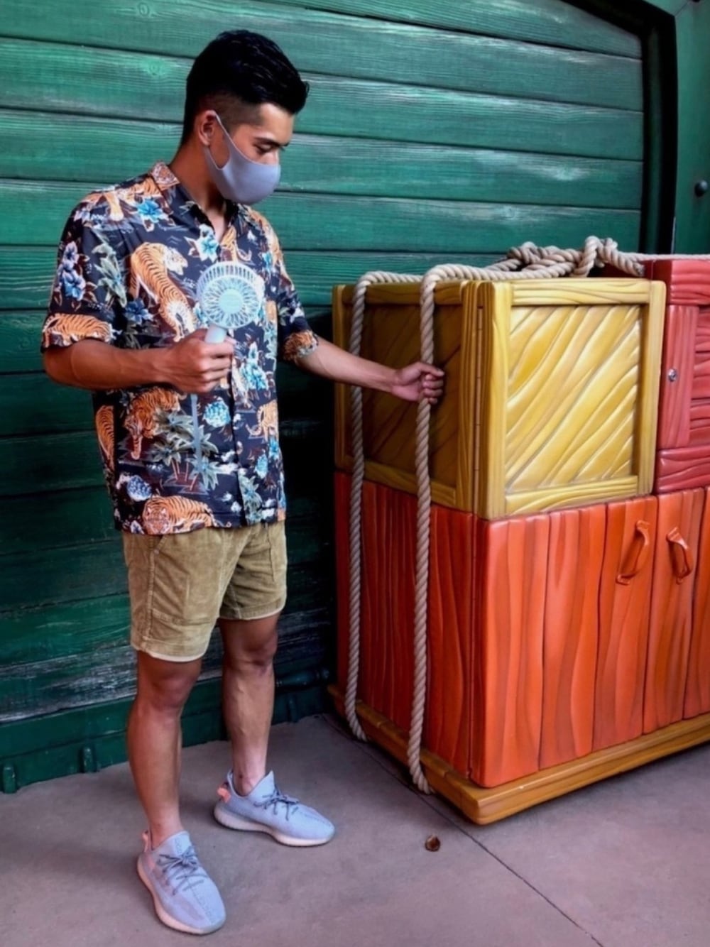 オープンカラーシャツを大きめで着てパンツは少し短く。 虎はなぜか好きです。