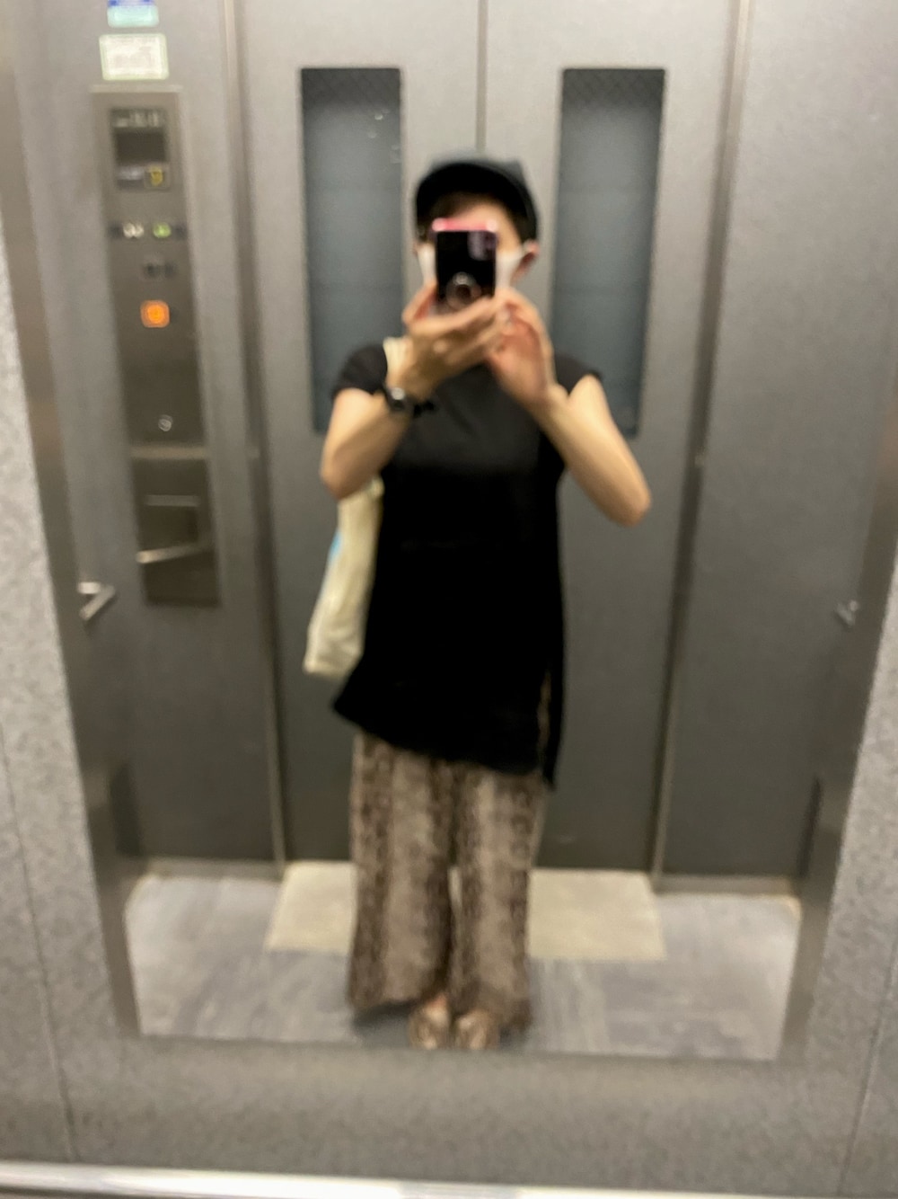 画像悪っ(笑) 今日は派手柄cocaのパンツにトップス黒。 上が黒、下がパイソン先輩で合わせました爆笑😂😂