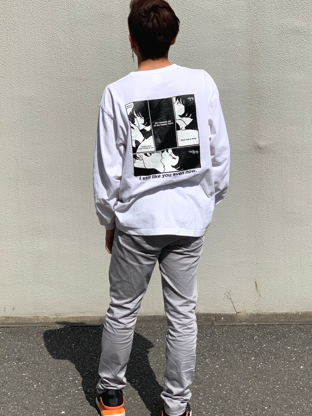ロンT活かしコーデ . ますだみくさんのロンTに灰色のパンツ、アクセントにZARAのスニーカーを合わせて、締めた感じと黒で締める感じを出したよ! 色は少なめにすると統一感出るのでオススメ!