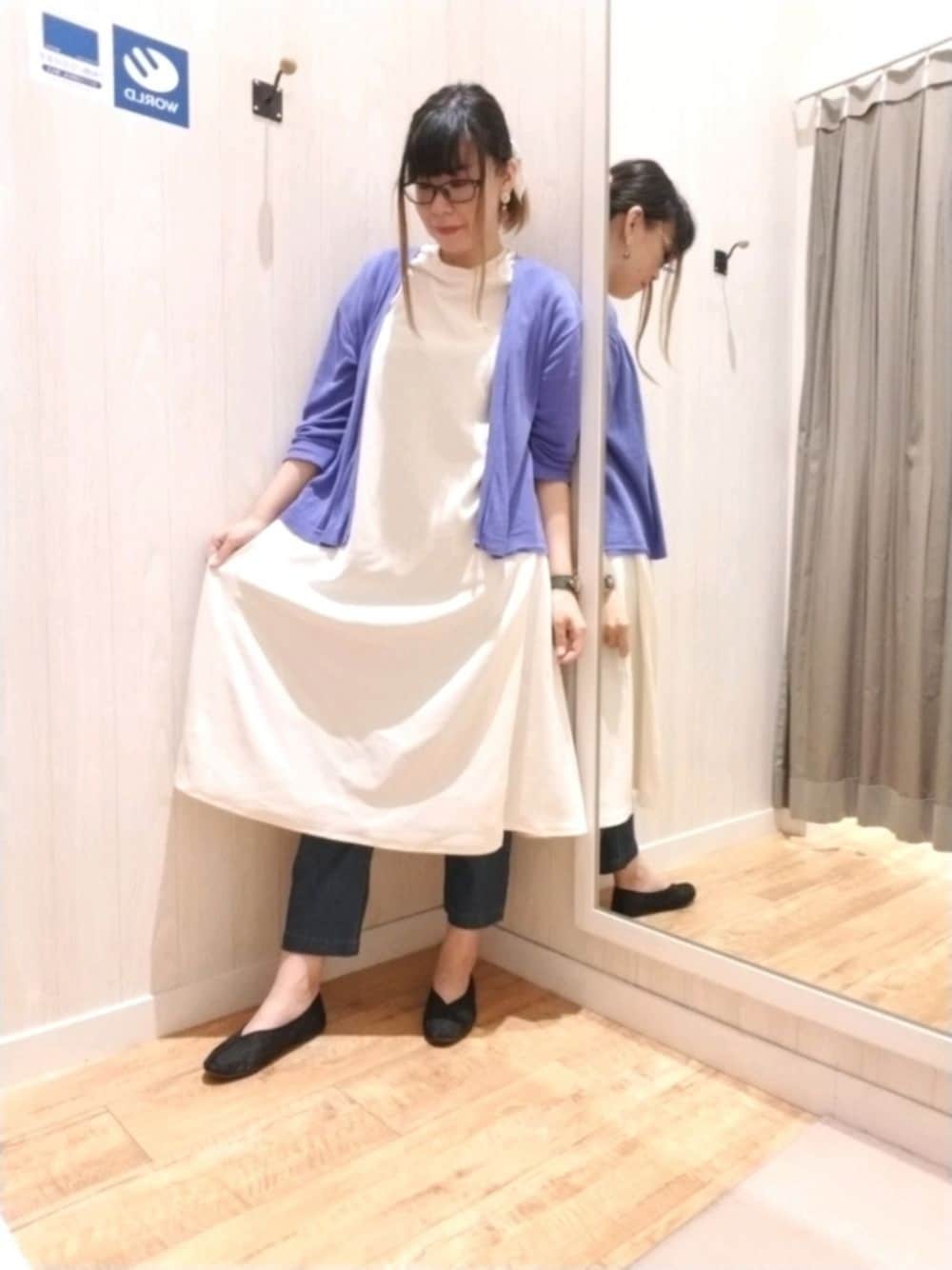 ご覧頂きありがとうございます!! 本日の営業はこんな感じでした😃 分かりずらいですが、Aラインのワンピースに紫のカーディガンとデニムパンツを合わせました🎶 安定のカジュアルコーデですw
