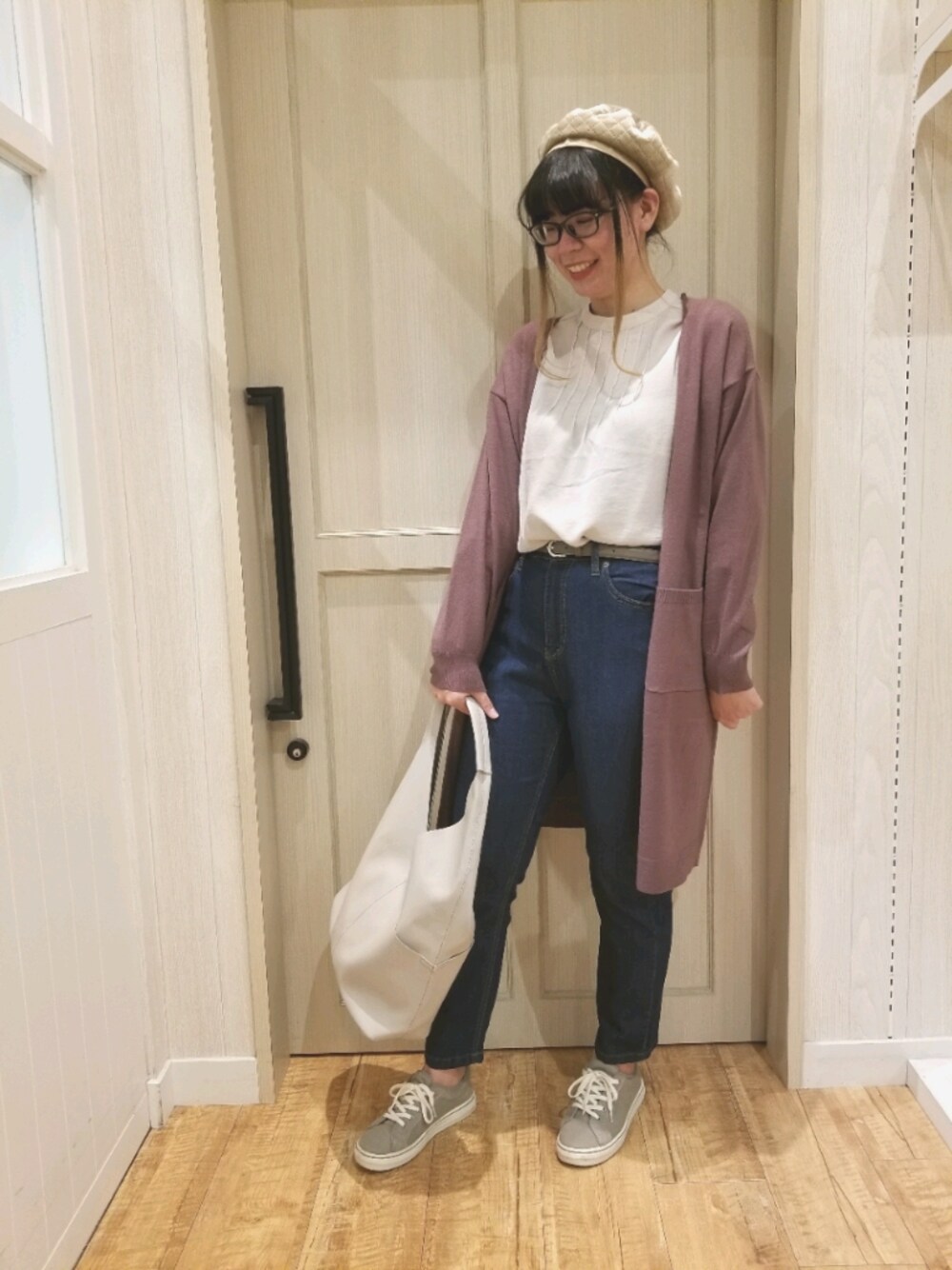 ご覧頂きありがとうございますm(_ _)m 大人カジュアルなスタイリングにしてみました✩ ロング丈のカーディガンはお尻、脚のラインをカバーできるので細めのパンツを履いても気になりません! あまり厚手の生地ではないので、今から使えます(*^^*) 今流行りのくすみカラーのピンクなので、ちょっとしたアクセントカラーとして使いやすいし、ピンクが苦手な方でも抵抗のない色合いになっています!