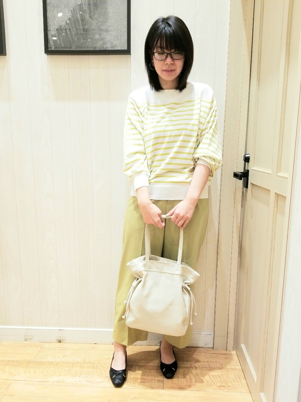 ご覧頂きありがとうございますm(_ _)m レモンイエローコーデ✨ とっても春っぽいカラーで組み合わせました。 ボーダーのトップスは毛玉になりにくく、着心地抜群のヘビロテ間違いなしのアイテムです! 丁度いい薄さで、今からでも羽織の下に着られるアイテムです♪ ボトムは毎年人気のイージーケアシリーズのパンツです♪ センタープレスが縦ラインを強調するので、脚長効果、美脚効果が期待できます✨ ワールドオンラインストアにもスナップ写真を掲載しています! もしよかったら覗いてみてください✨
