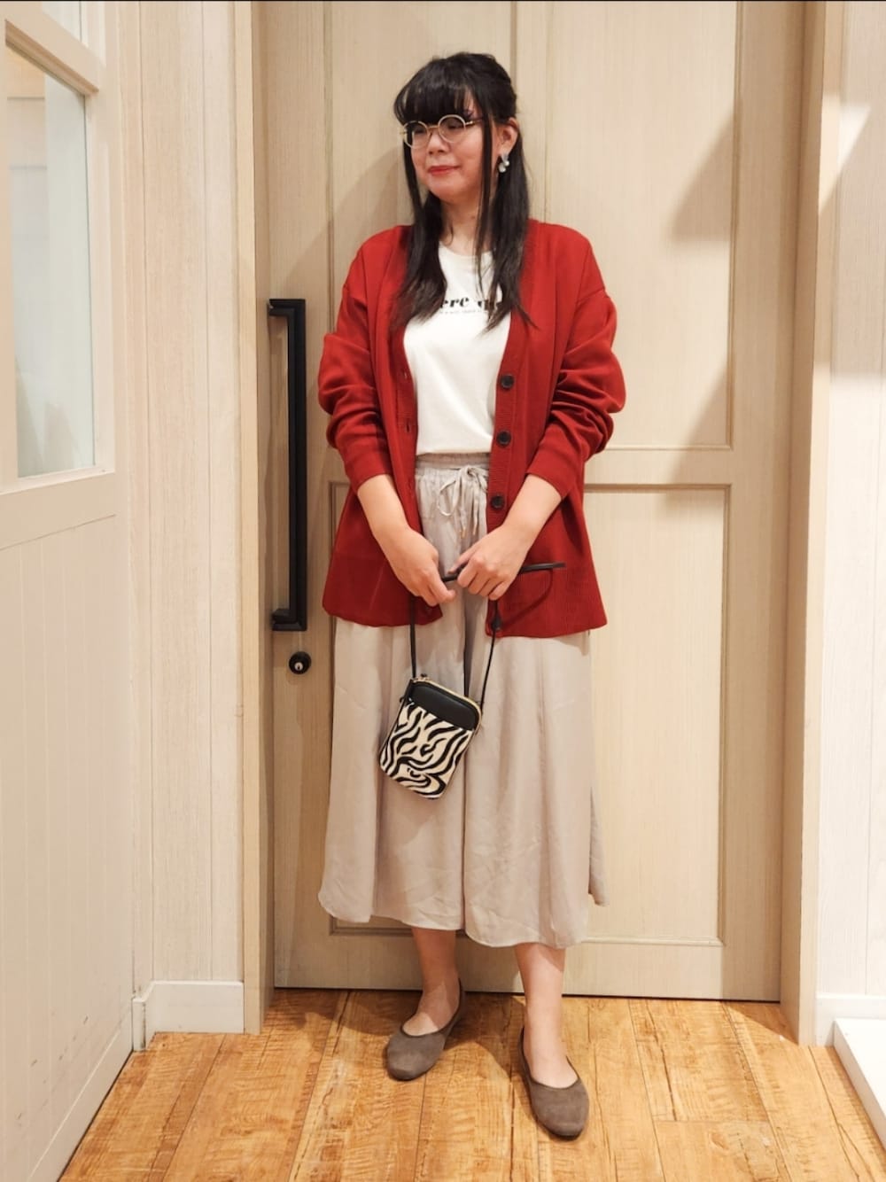 ご覧いただきありがとうございますm(_ _)m 赤いカーディガンをアクセントにしたリラックススタイルです。 鮮やかなカーディガンが映えるように他のアイテムは落ち着いたカラーを使いました。 スカート見えするパンツがフェミニンな印象を与えてくれます。 ☆サイズ感☆ 少し大きめに着られるカーディガンです。 絶対に脚のラインカバーするスカーチョ! ☆生地感☆ スポンディッシュ特有のよく伸びる生地です。 また、軽い着心地で肩こりにお悩みの方にもオススメ! サラッとした生地で暑い日でも涼しく着られます。 生地に光沢感がありきちんと感を演出できます♪ ☆オススメポイント☆ 胸元がスッキリするVネックデザインなので、胸元にデザインのあるインナーが映えるます。 スカーチョはふわっと広がるシルエットが可愛い! ワールドオンラインストアにスナップ写真を掲載しています🎶 もしよかったらのぞいてみてください🎶
