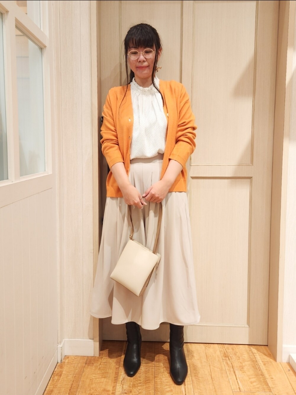 ご覧いただきありがとうございますm(_ _)m ビタミンカラーのカーディガンをアクセントにした キレイめカジュアルスタイルです。 インナーは首元が可愛いちびフリルのブラウスにし、 パンツ、カーディガンはシンプルなデザインにして 大人可愛いコーディネートにしました🎶 足元は黒いブーツにして締め感を持たせてみました。 インナーは首元が可愛いちびフリルのブラウスにし、 パンツ、カーディガンはシンプルなデザインにして 大人可愛いコーディネートにしました。 カーディガンはお尻にかかるくらいの着丈で、 腰周りをカバーしてくれます。 目を引く鮮やかなオレンジで気分が上がります🎶 柔らかい生地感で肌触り◎ スカーチョはそんなに長くない丈感なので、 身長が低い方にもオススメです。 スカーチョはウエストゴムなので楽に履けます。 おうち時間でも楽に過ごせるので ヘビロテ間違いなしです。 スカーチョはふんわり広がるフレアデザインが 女性らしいシルエットを作ってくれます。 また、ウェーブタイプの悩みの 下半身デブをカバーしてくれます🙌 ワールドオンラインにスナップ写真を掲載しています。 もしよかったら覗いてみてください。