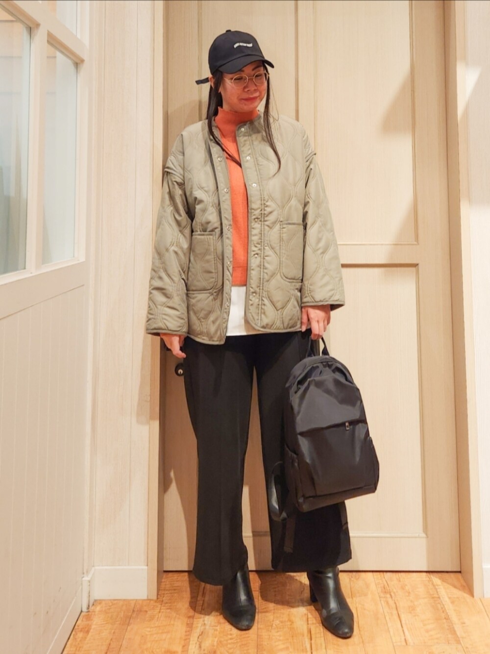 ご覧いただきありがとうございますm(_ _)m キルトジャケット、レイヤード風のトップスにワイドパンツでカジュアルスタイルにしてみました。 小物をリュックとキャップを合わせて更にカジュアル感をアップさせました。 カーキとオレンジの相性の良さを知れた組み合わせになりました(^^♪