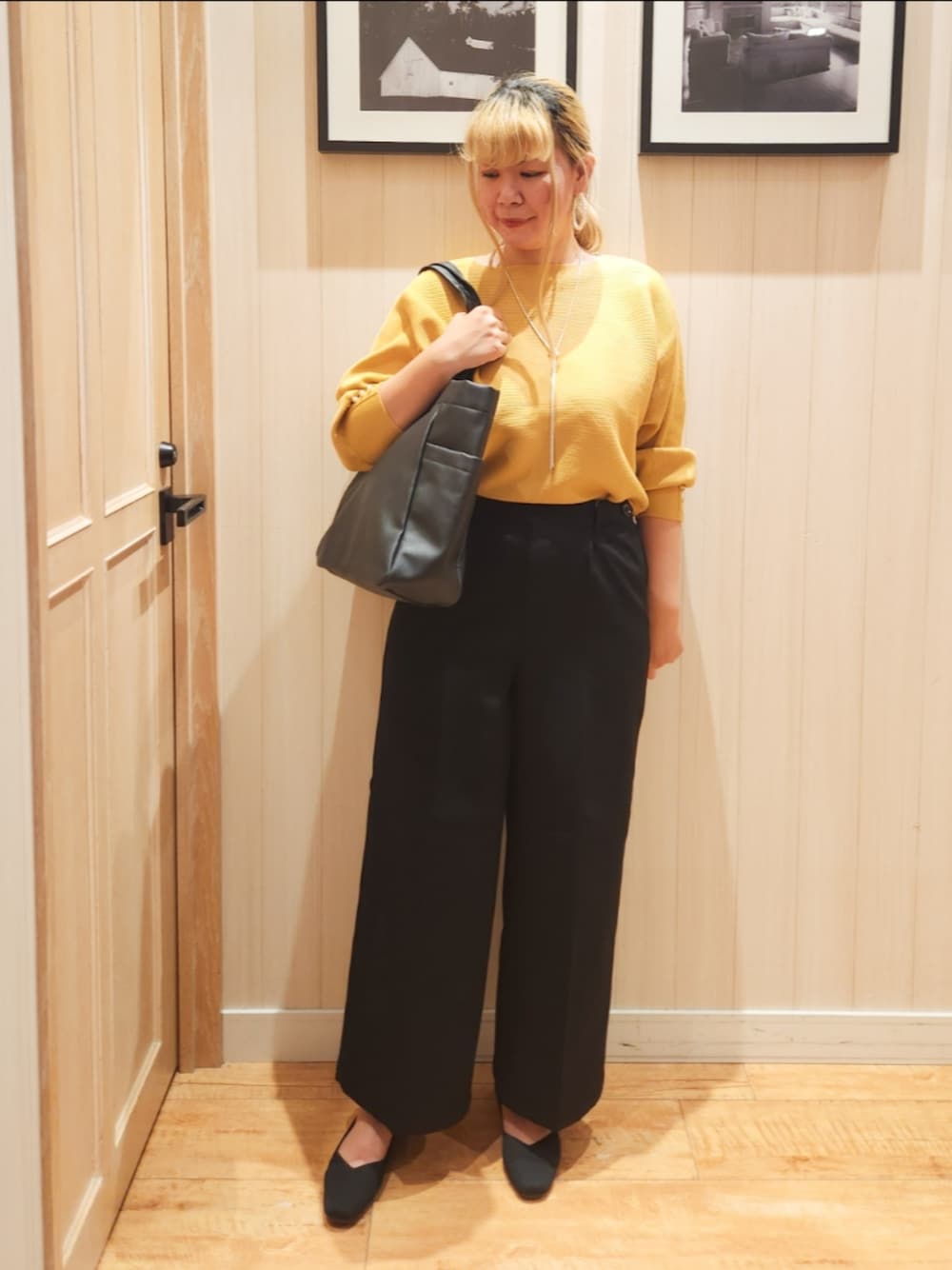 れーやん(SHOO・LA・RUE)のニット/セーター「◆【高レビュー/洗える】優しく上品に リブドルマン お袖フェイクパールニット」を使ったコーディネート