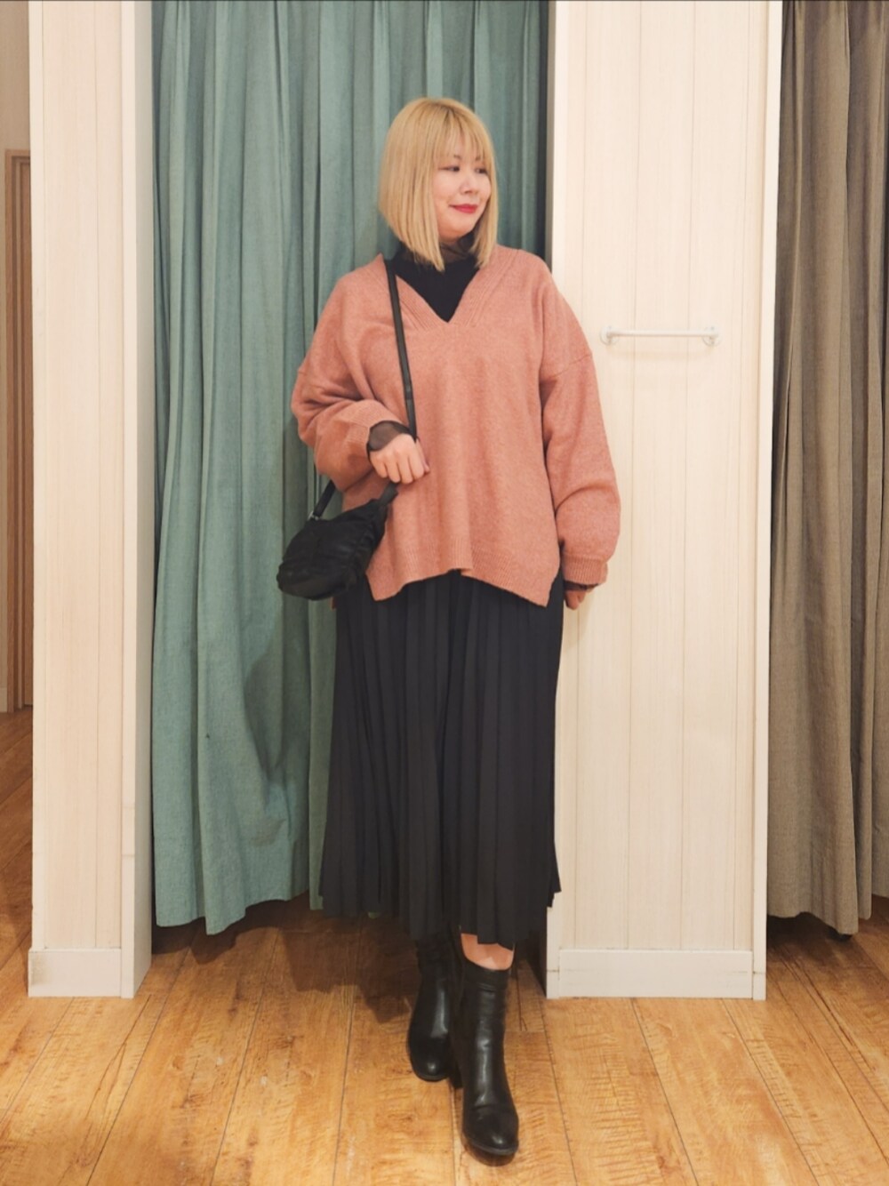 れーやん(SHOO・LA・RUE)のニット/セーター「ふんわりやわらか変形Vネックニット」を使ったコーディネート