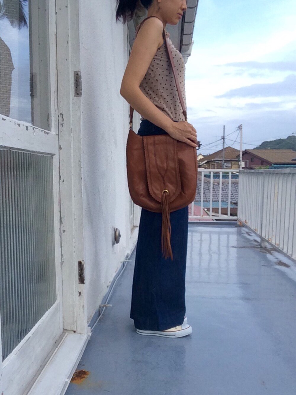 金曜日はなんだか、コーディネートに悩みます( ? _ ? ) 一週間の終わりだから?? 困った時はデニム! 荷物多いのでなかなか登場しない、 ひさしぶりのバックで。