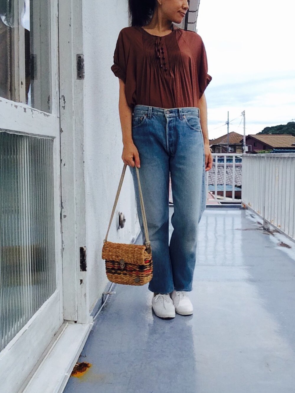 最近古着を混ぜるコーディネートが気に入ってるみたいで今日も꒰•̫͡•ོ꒱ 花火大会がなくなってしまったから、、ビーサンからの白スニーカーで。
