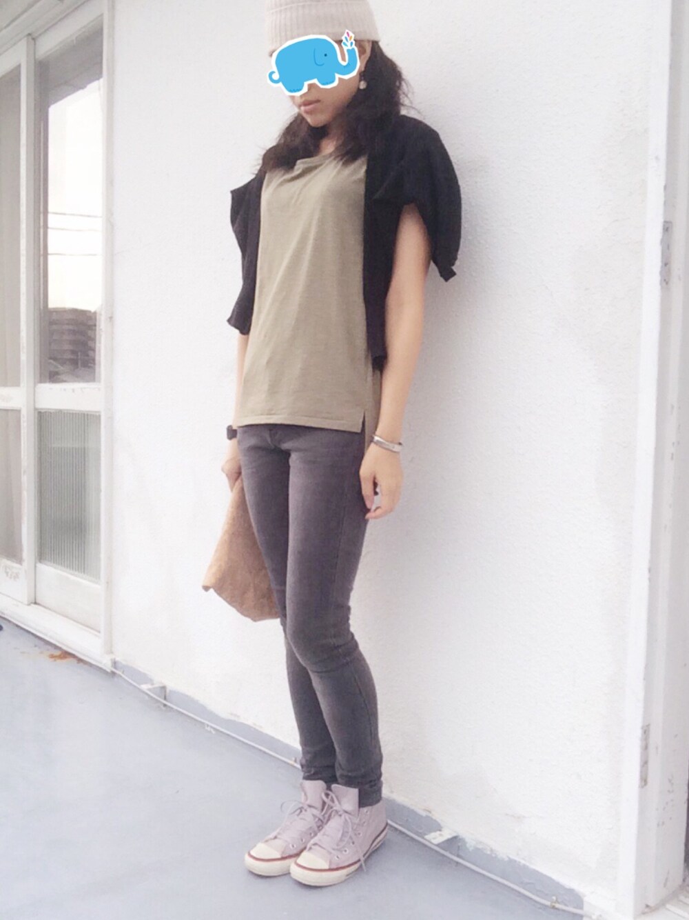 今日も涼しい!! 何か羽織りたいくらいの気温! この前、700円くらいでニット帽を買ったので かぶりたくてのコーディネートです。 ちょっと前にパンツが白でUPしてますが、、今日は黒パンツで。
