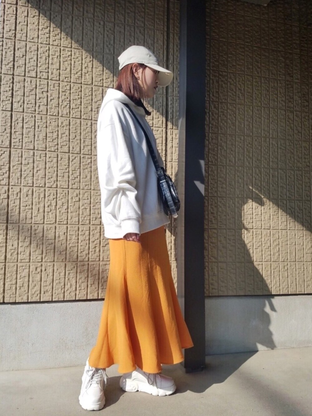 おはようございます🤍 今日はオレンジのスカート着てみました🍊 良かったフォローお願いします🤍