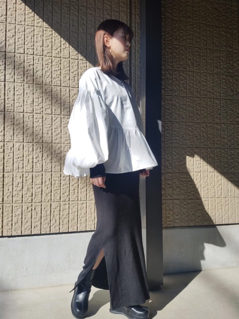 rena70のシャツ/ブラウス「ボリュームスリーブフレアブラウス」を使ったコーディネート