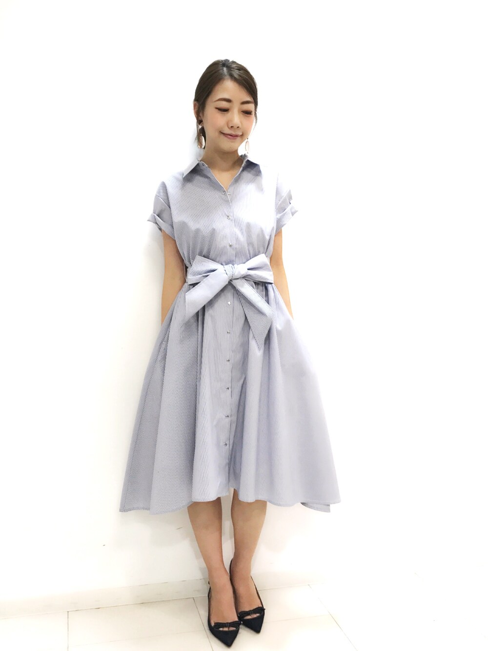 サイドヘムのシャツワンピ 今年はサッシュベルトでカジュアルにも着たいな ストライプが断然気分(≧▽≦)