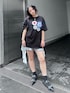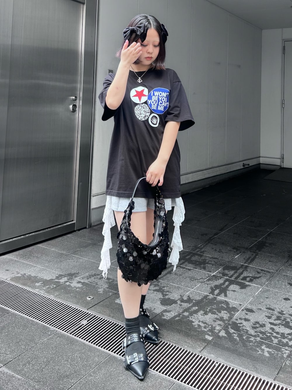 今流行りの缶バッチ風のデザインが特徴的なTシャツ👚!!胸元の英語はI WON'T BE YOU,YOU CAN'T BE ME.私はあなたにはならない、あなたは私にはなれないという素敵な意味が書かれていて、着ているだけで前向きになれますっ💨 Tシャツの下にはレースデザインのキャミを着てワンポイントに!!