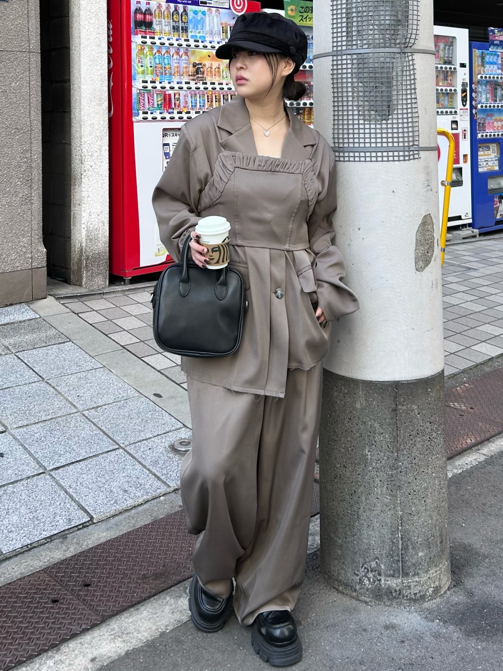 ジャケットの上にビスチェを着るのが今どき⭐︎ キャスケットを被って大人っぽく!!