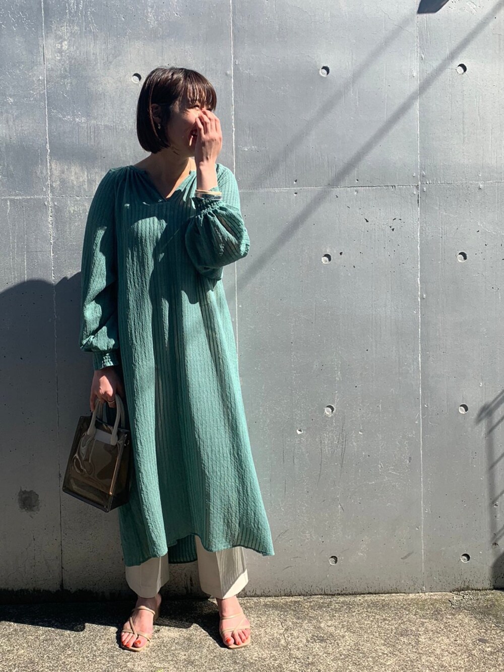 sato renaのワンピース「シアーストライプバックシャンワンピース」を使ったコーディネート