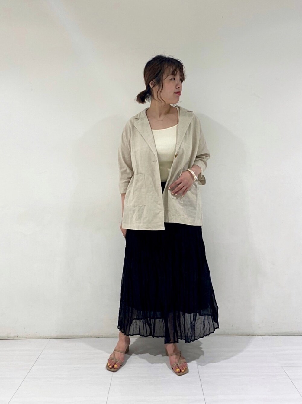 Instagram ☞ @sato__rena ジャケットスタイルでも綿麻素材だと カジュアルな雰囲気で着れます! またボトムにフレアスカートと 足元にはサンダルを持ってきて ラフな印象にしてみました☺︎♪