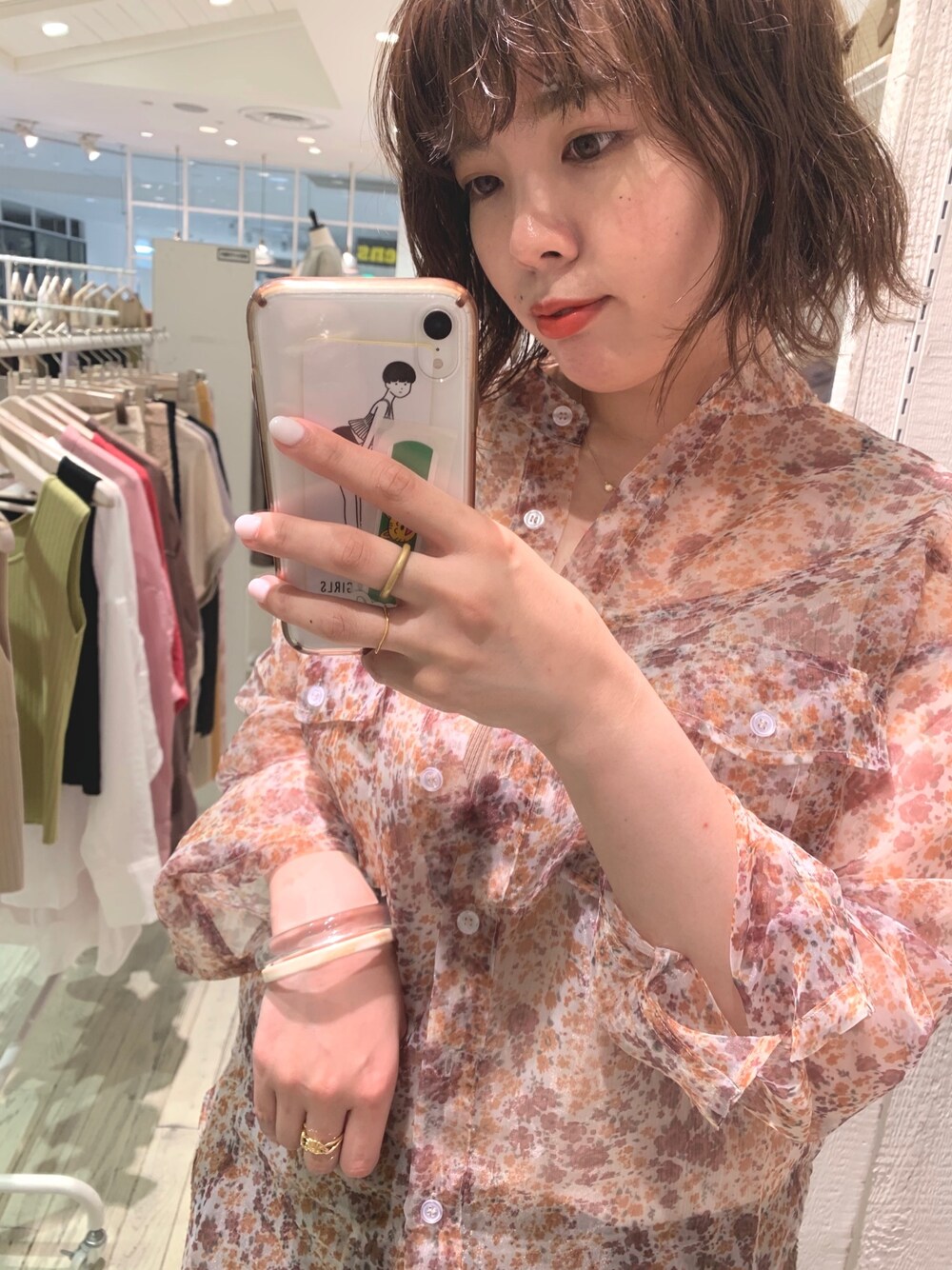 Instagram ☞ @sato__rena オーガンジーの透け感が可愛いシャツ♡ 総柄のフラワーデザインですが 子供っぽくならず、甘くなりすぎず こなれ感が出るシャツになってます♪ インナーにはカップ付きのキャミを合わせるのが オススメです!