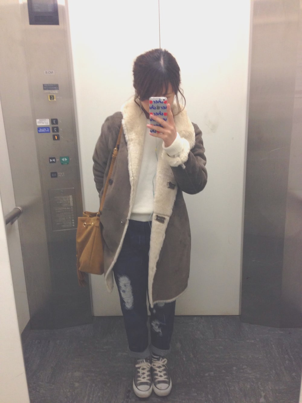 ずっと欲しかったダメージデニムをギリギリゲットできたので初おろし♡しかもセールだったのでお買い得♡ でもこの季節はダメージ部分から冷たい風が当たるからちと寒い…!でも履きたかったから…! このニット本当着やすくてなんにでも合うし家で洗えるし最高♡