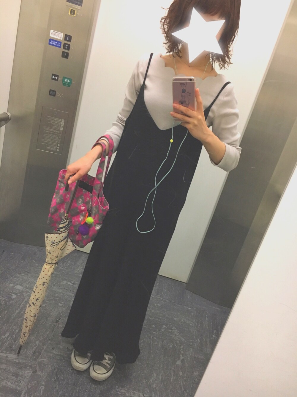このスカラップのトップス良い感じ〜♡ 背中が意外と広めだから、冬はヒートテック背中空いてるやつにしないと🙄 髪を赤にして前髪オン眉ぱっつんに💇これも良い感じ♡