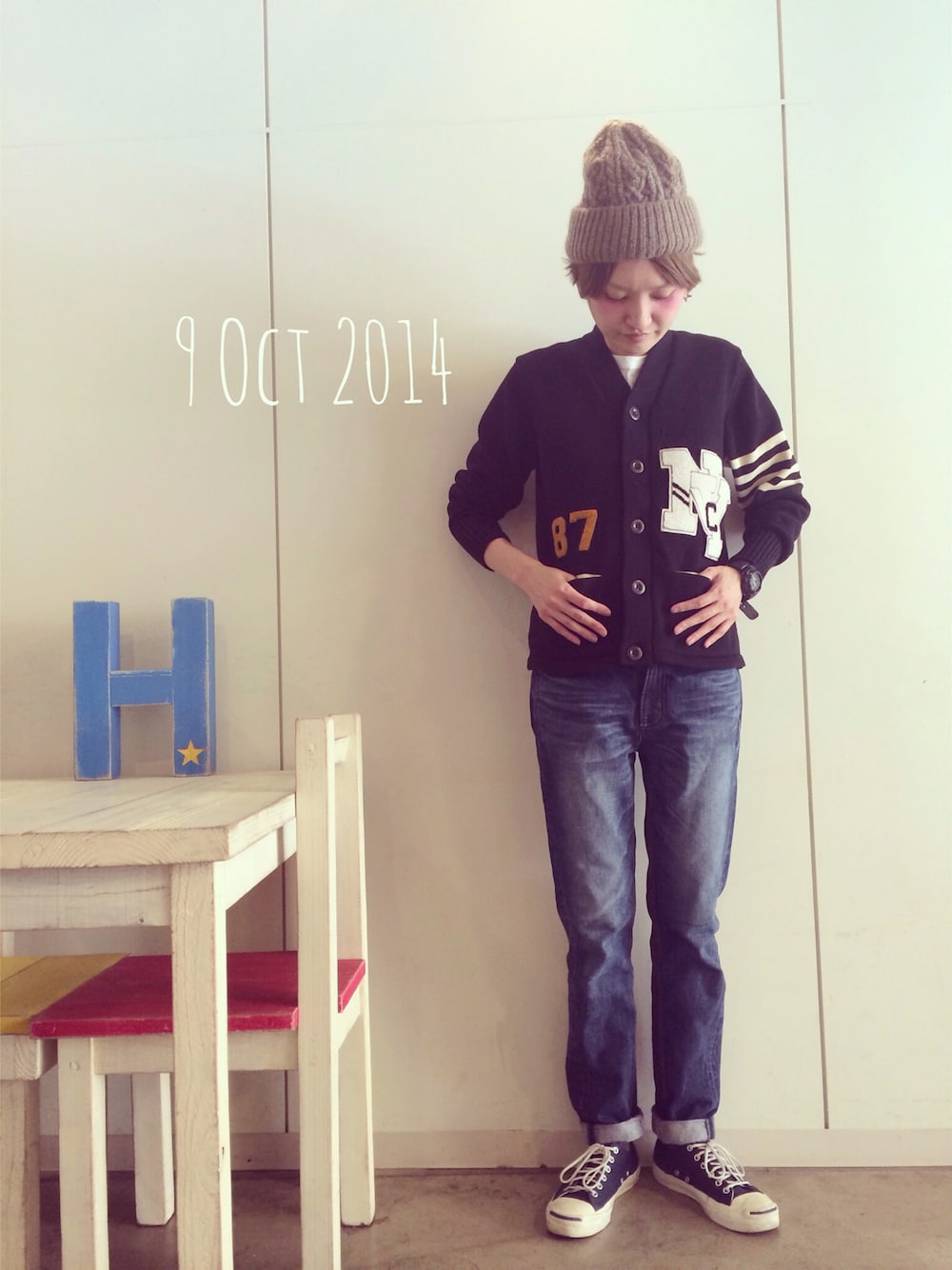 カーディガン BEAMSBOY Tシャツ HANES デニム バナーバレット ニット帽 カオリノモリ スニーカー BY×converse