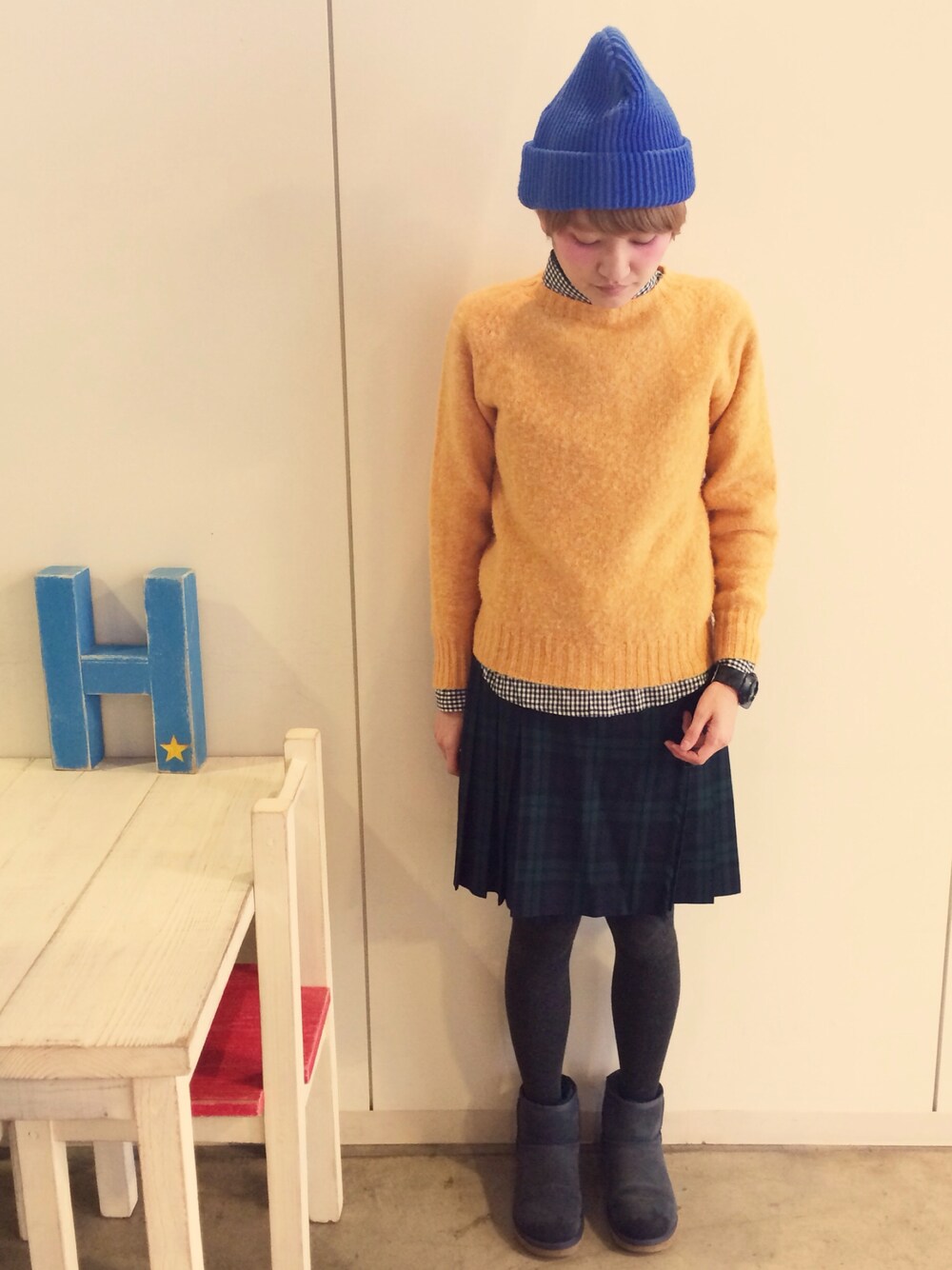 ニット BEAMSBOY シャツ 103 スカート BEAMSBOY ブーツ UGG ニット帽 カオリノモリ