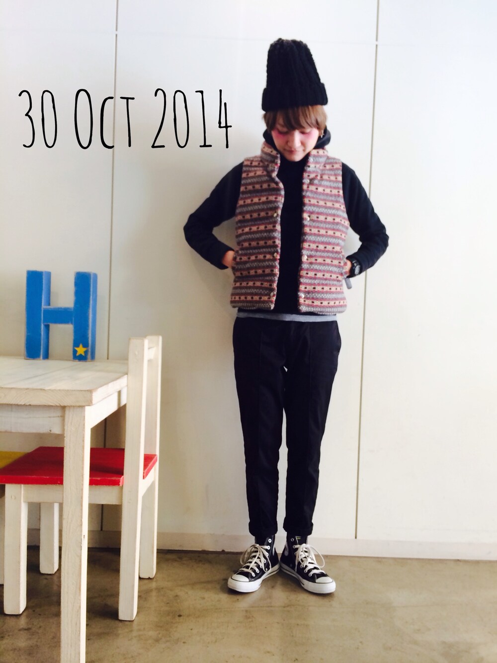 ダウンベスト BEAUTY&YOUTH パーカー URBANRESEARCH DOORS パンツ bedwin ニット帽 override スニーカー converse
