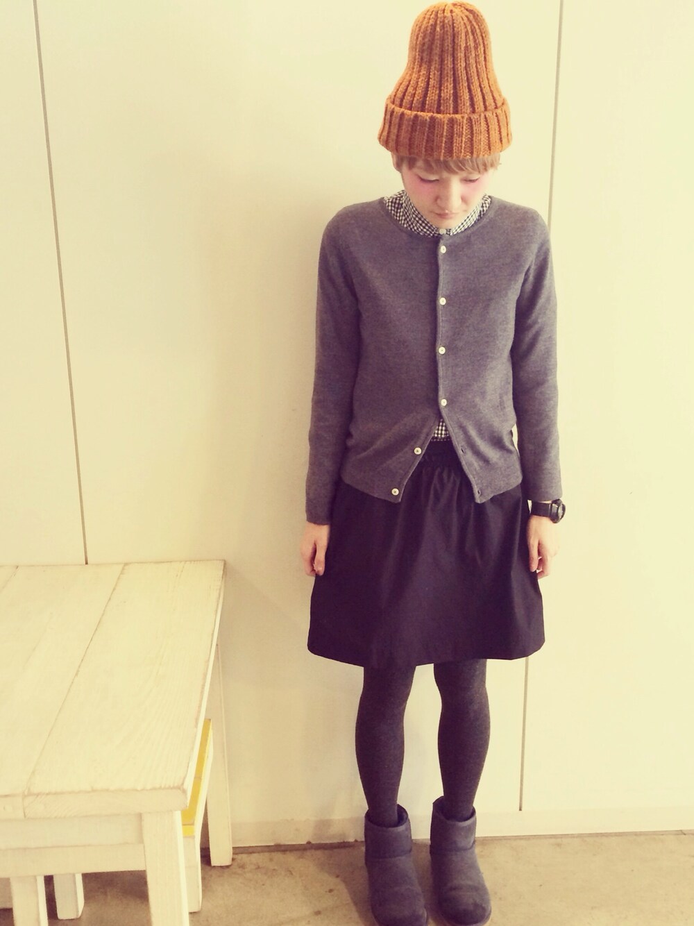 カーディガン BEAMSBOY シャツ 韓国で。 スカート ロニースコッツ ブーツ UGG ニット帽 カオリノモリ