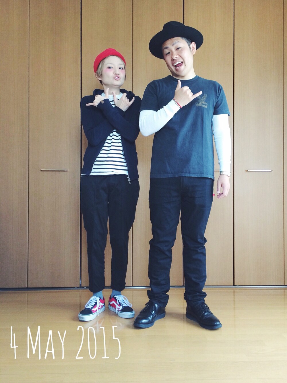 GW3日目コーデ。 わたし。 パーカー LOOPWHERLLER Tシャツ LOOPWHERLLER パンツ BEDWIN ニット帽 override スニーカー VANS 旦那。 Tシャツ COOTIE パンツ BEDWIN 靴 redwing ハット override