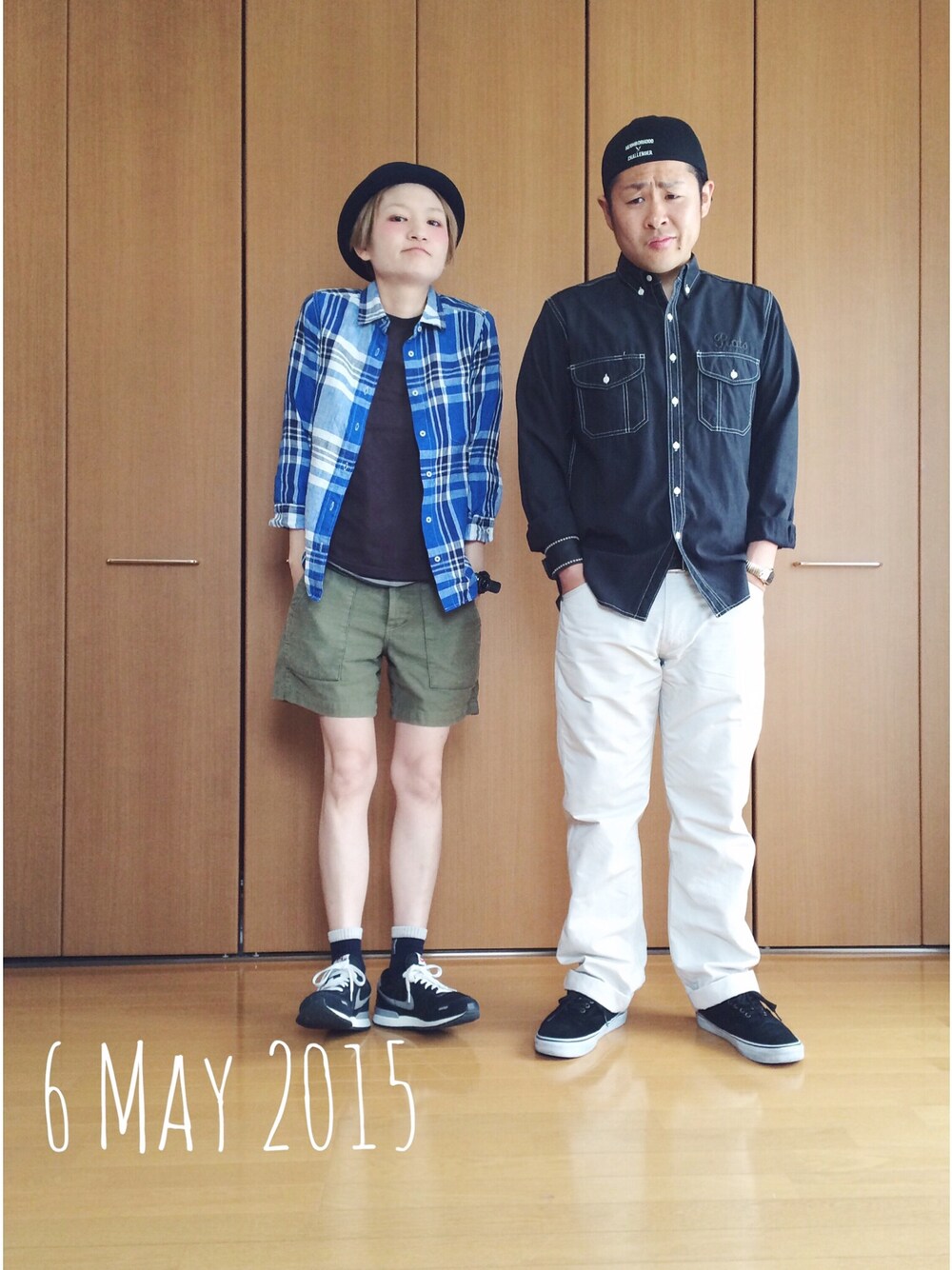 わたし。 シャツ urbanresearchdoors Tシャツ FREAKSSTORE ショートパンツ BEAMSBOY ボーラー帽 override スニーカー NIKE 旦那。 シャツ RATS ホワイトデニム deluxe スニーカー VANS CAP CHALLENGERxNEIGHBORHOOD