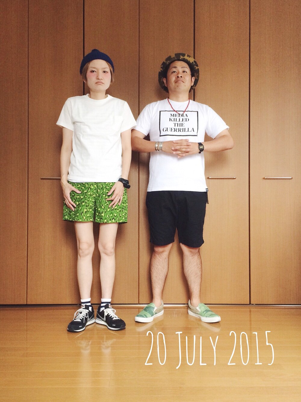 自分。 Tシャツ SHIPS ショートパンツ BEDWIN スニーカー NIKE ニット帽 override 旦那。 Tシャツ FPAR ショートパンツ BEDWIN ハット BEAMS スニーカー RISEY
