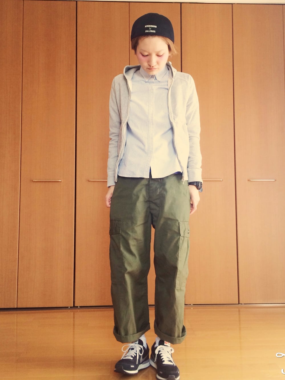 パーカー URBANRESEARCH DOORS シャツ 無印良品 パンツ BEAMSBOY スニーカー NIKE キャップ ネイバーフッド