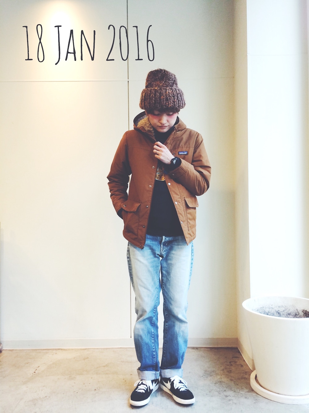 マウンテンパーカー patagonia スウェット beamsboy デニム journalstandard スニーカー NIKE ニット帽 overrid