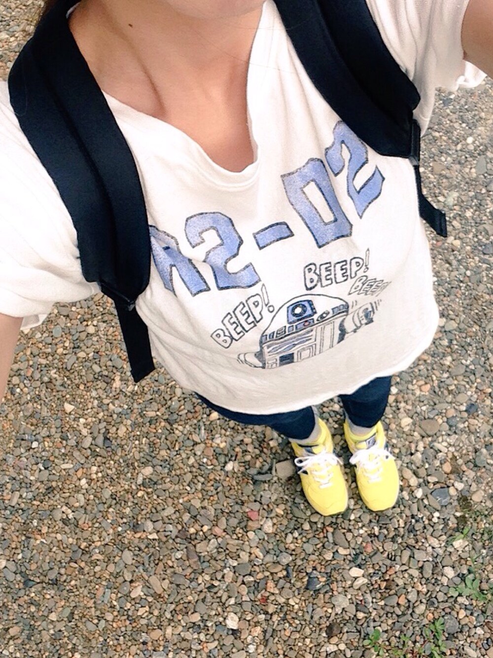 実はネイビーのフェルトハットも被っています🎵 映りませんでした笑 今天我沒有工作所以我們去買東西。 我穿的R2D2的T卹好可愛吧~!