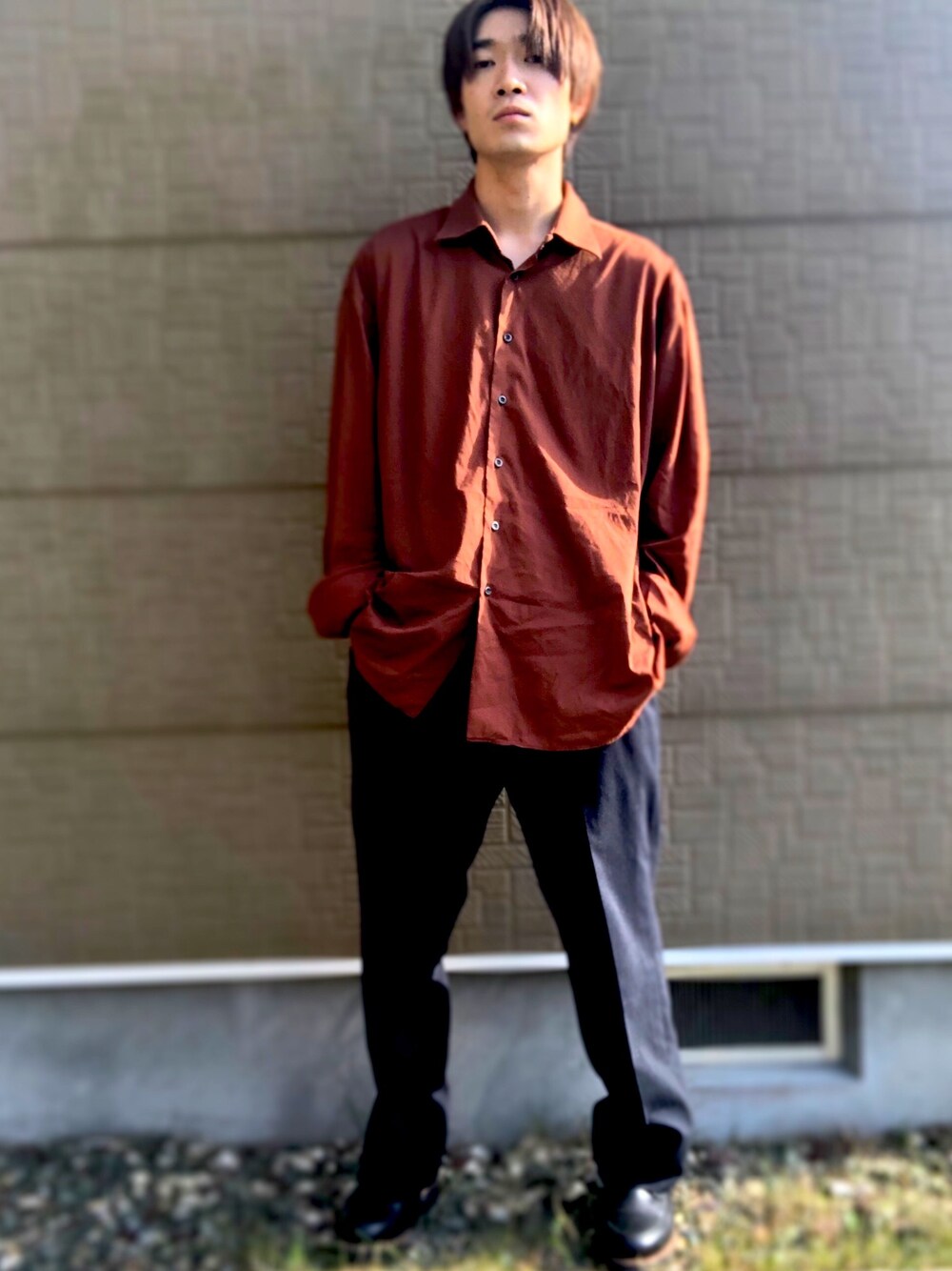 今日はゆるっとキレイめコーデ‼️ トップスは古着で買ったPRADAのブラウンのシャツ😋 色味とサイズ感が好き笑 パンツは古着で買ったストレートパンツでストレートに落ちるドレープ感がたまらん👍 全体的にゆったりとしてるので、足元にはカチッとしローファーを🙆♂️