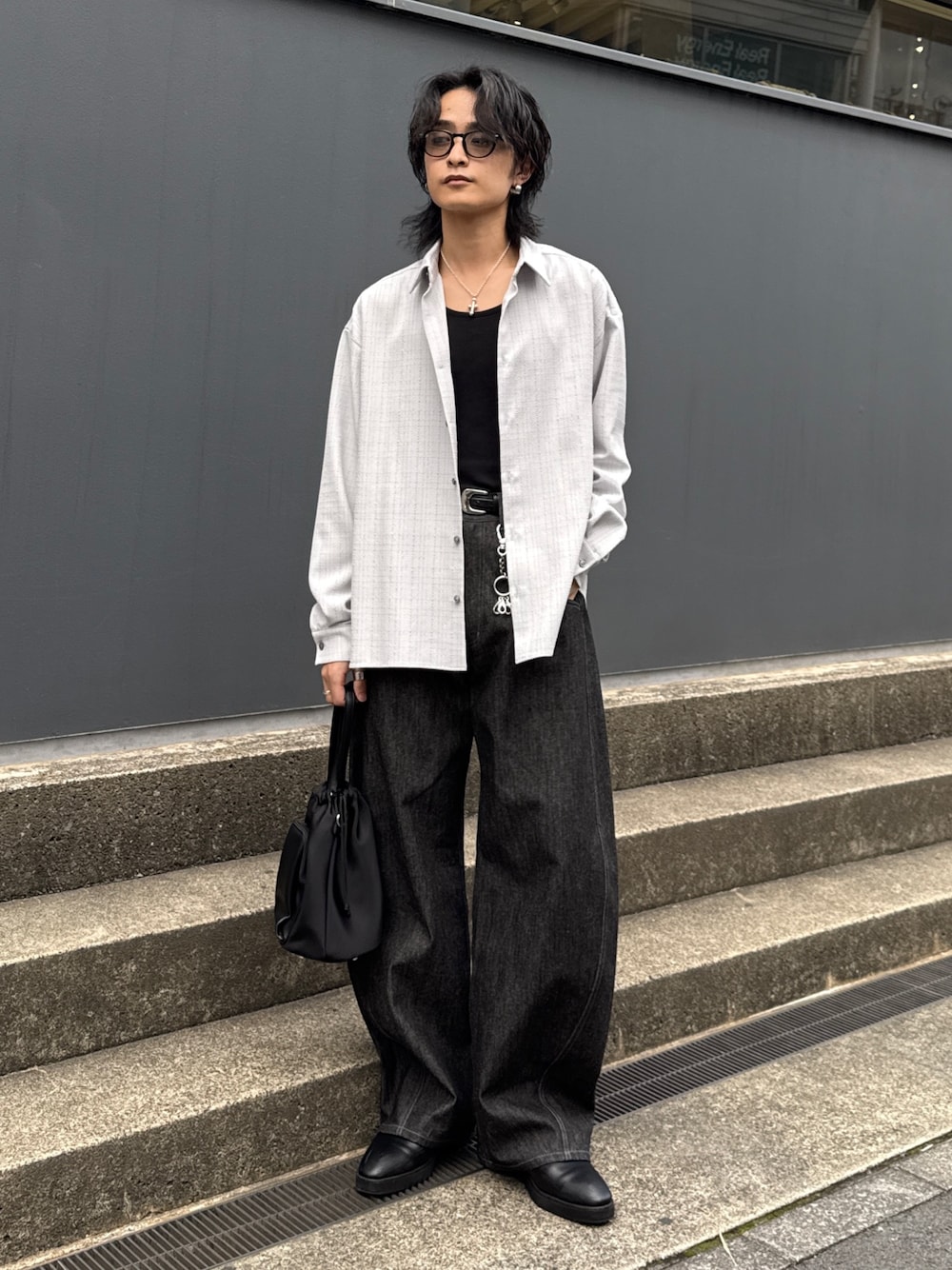 173cm / 57kg ・ラフネスシャツ / Sサイズ着用 凹凸のある生地が特徴的なシャツ。 立体的なデザインとベーシックなサイズ感でインナーから1枚着まで幅広くお使いいただけます! 綺麗なシルエットにどことなくモードな雰囲気も出せる大人かっこいいシャツです! ・リジットカーブデニムパンツ / 32サイズ着用 リジットだから深みのある印象。 まるでスラックスかのような上品さのあるデニムなので、シャツやジャケットとの合わせでも抜群に合います。 細過ぎず太過ぎないカーブシルエットが他にあまり無く、スタイルアップ効果も抜群◎ マジで綺麗です。 ・サングラス コスパ最強のサングラス! 程よい色味で使いやすいし、かけるだけで雰囲気出るから最高すぎる!