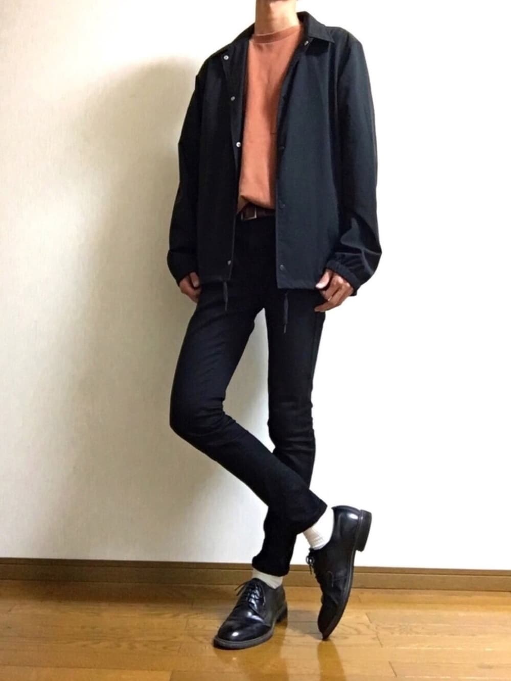 #006 綺麗めなアイテムにオレンジのTシャツをタックインしてみました✌️ オレンジと黒の組み合わせいいよね!?😆