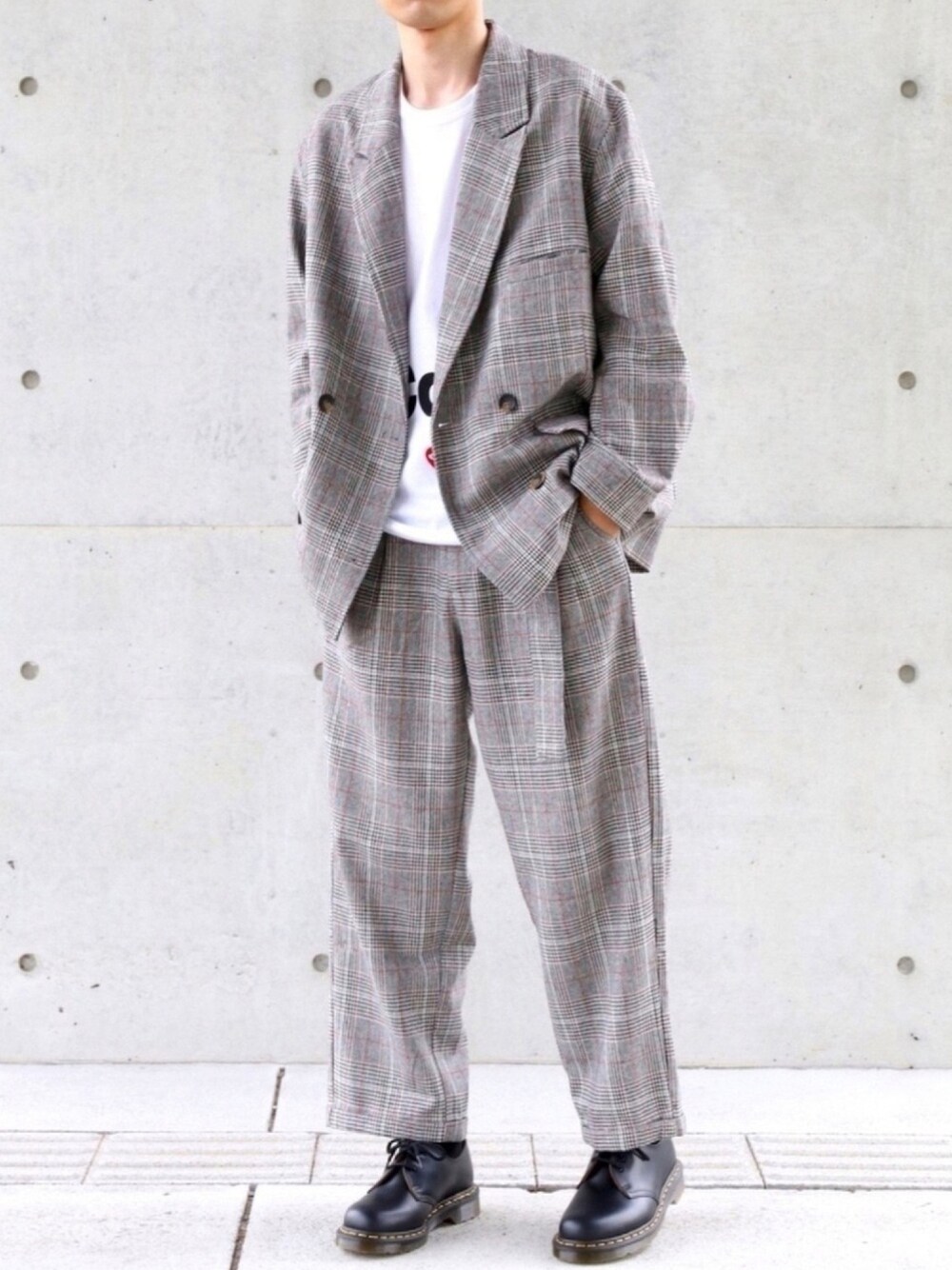 rennのテーラードジャケット「loose double check tailored jacket/ルーズダブルチェックテーラードジャケット(セットアップ対応)」を使ったコーディネート