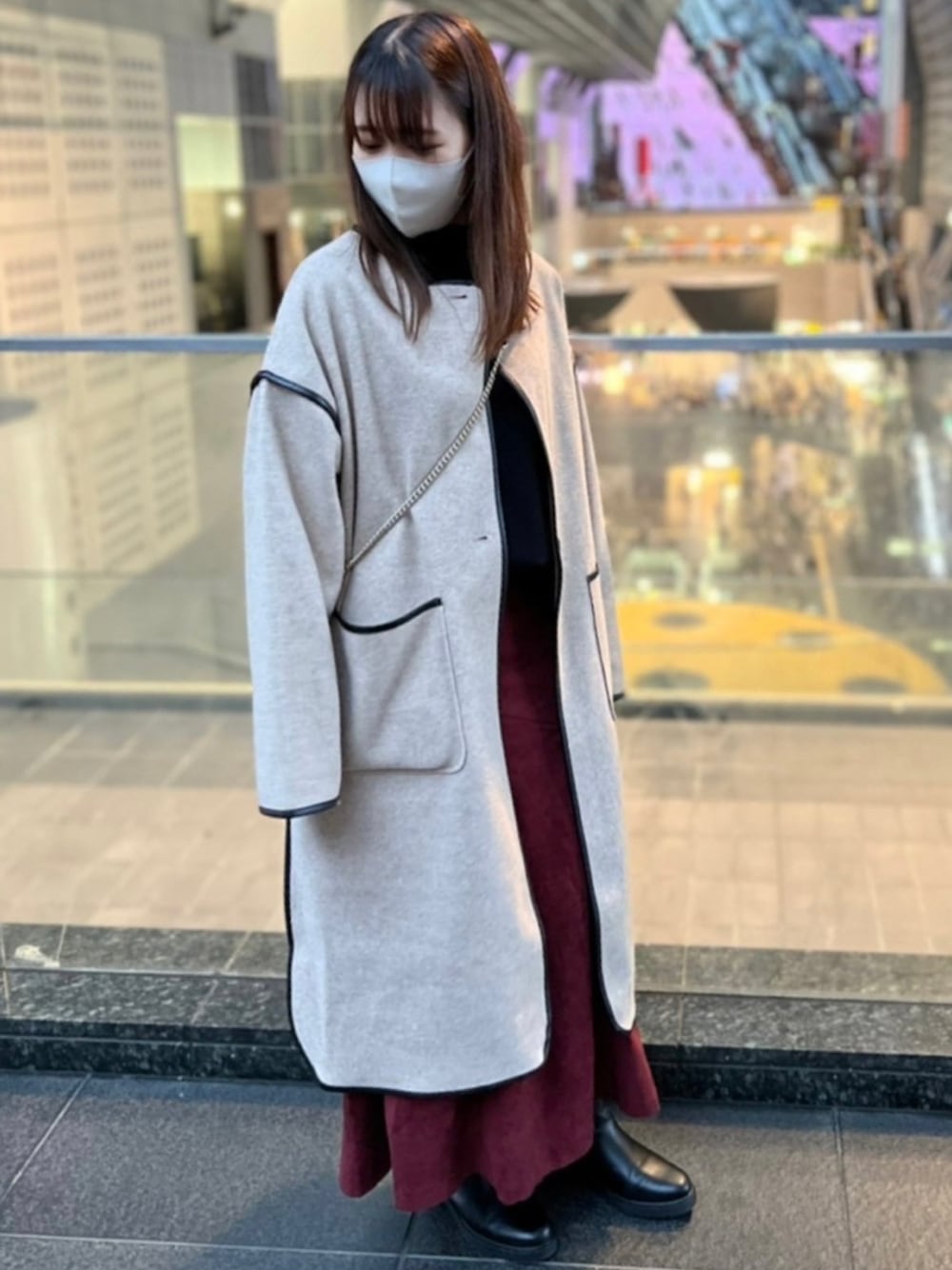 骨格ストレートちゃんのノーカラーコート「【マルチウェイ】サテンライナー付きパイピングガウンコート / キルティングコート/ノーカラーコート」を使ったコーディネート