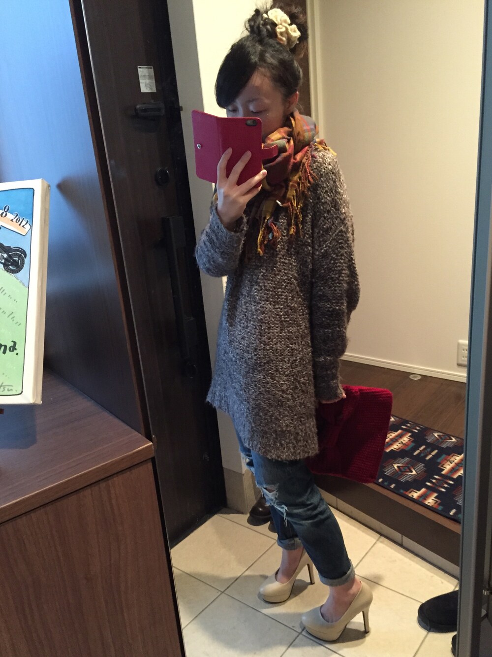 すっぴん家に引きこもりコーデ(^ω^)w 寒いくせにダメージデニム履いちゃったよ!w この矛盾(´-`).。oO(w