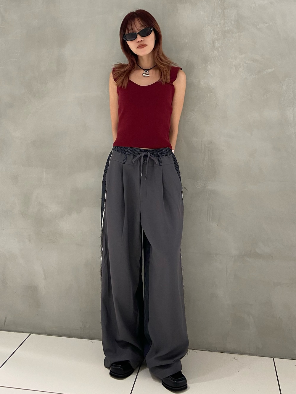reny33(SLY ソラリアプラザ店)のタンクトップ「SQUARE NECK KNIT TANK スクエアネック ニット タンク サマーニット 夏服 ノースリーブトップス」を使ったコーディネート