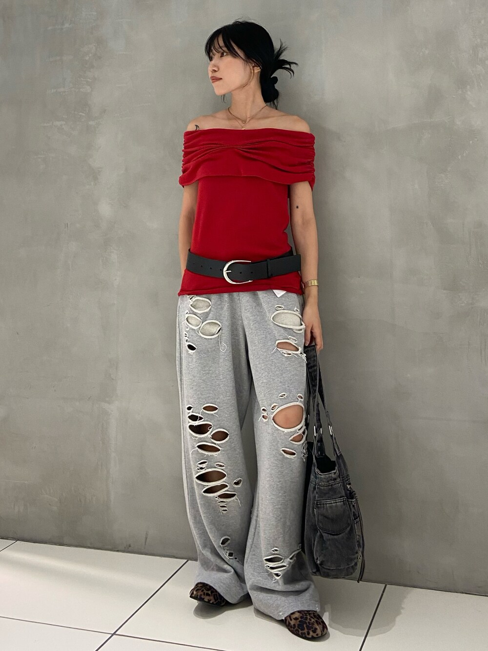 reny33(SLY ソラリアプラザ店)のTシャツ/カットソー「STRETCH CUT OFF SHOULDER TOPS ストレッチ カット オフショルダー トップス 夏服 秋服」を使ったコーディネート