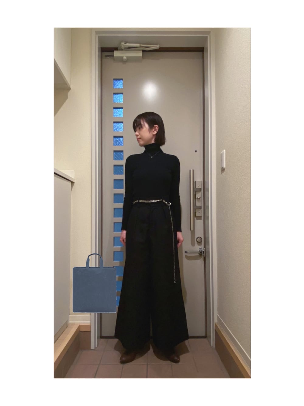 Yum.iのニット/セーター「エクストラファインメリノリブタートルネックセーター(長袖)」を使ったコーディネート
