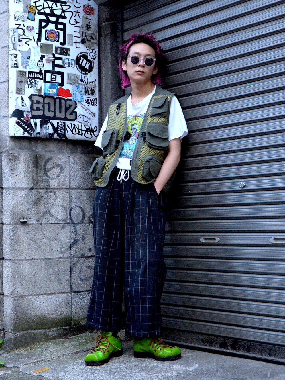 ■着用アイテム■ vest : no brand 去年に引き続き、今年もトレンドのフィッシングベスト!古着のベストは"釣り人っぽくなりすぎない"、"おじさんっぽくなりすぎない"アイテム選びとコーディネートの組み方が重要になってきます!着用しているのはメッシュ素材で抜け感を、多数のポケットでデザイン性を出した優れもの🙆♂️ T-shirt : brand インディアンな雰囲気にスカルとサイケデリックな色使いが特徴的なT-shirt!サイズ感がゆったりしていて落ち感のあるます!馴染みも◎ Pants : Sasquatchfabrix サスク定番の4タックワイドパンツ!自分も柄違いで1本持ってます!ウエストにはドローコード入り、ハイウエストで履くとアンクル丈、少し下げれば無骨な雰囲気が出ます!腰から裾にかけてズドンと落ちるシルエットが野暮ったすぎない絶妙なバランスを持ってます! ------------------------------------------------------- 原宿のセレクトヴィンテージショップdude(デュード)原宿のWEARアカウント。 🍀yotsuba🍀の正規取扱店。 WEARに掲載している全ての商品がdude原宿のオンラインショップ→ http://dude-harajuku.ocnk.net/ にて通販対応可能となっております。 是非、店頭とオンラインショップ合わせてチェックお願い致します。