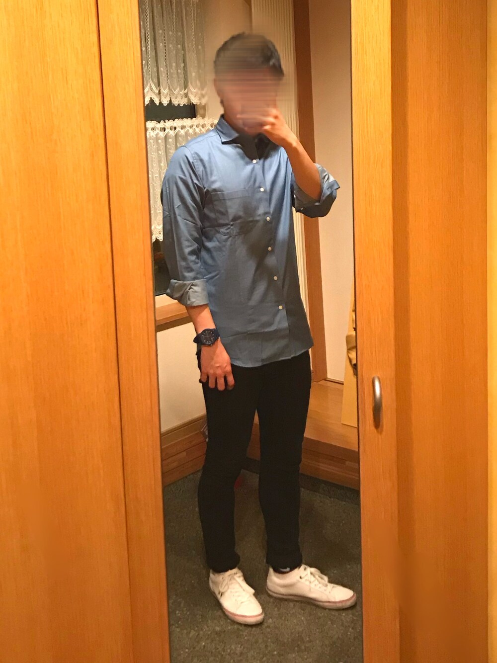 全体的にキレイ目コーデで決めてみました! トップスのシャツはGUの売れ残りで590円で購入しました笑 値段のわりに光沢感もあり、結構いい感じです^_^ それと腕時計のエクスチェンジの時計は今日、電池を入れ替えてきたので、これから使用頻度を増やしていきたいです!
