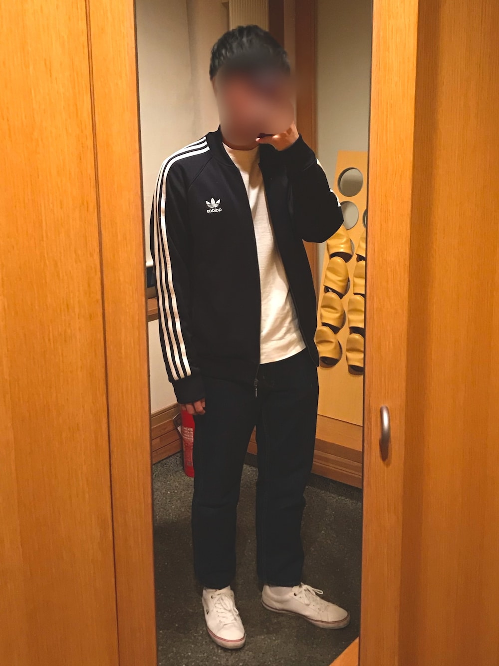 古着のATPジャケットいい感じ購入してしまった、、、。 デニムもいい感じ ヨンスほどアディダスのトラックジャケット似合う人はいないと思う、、、