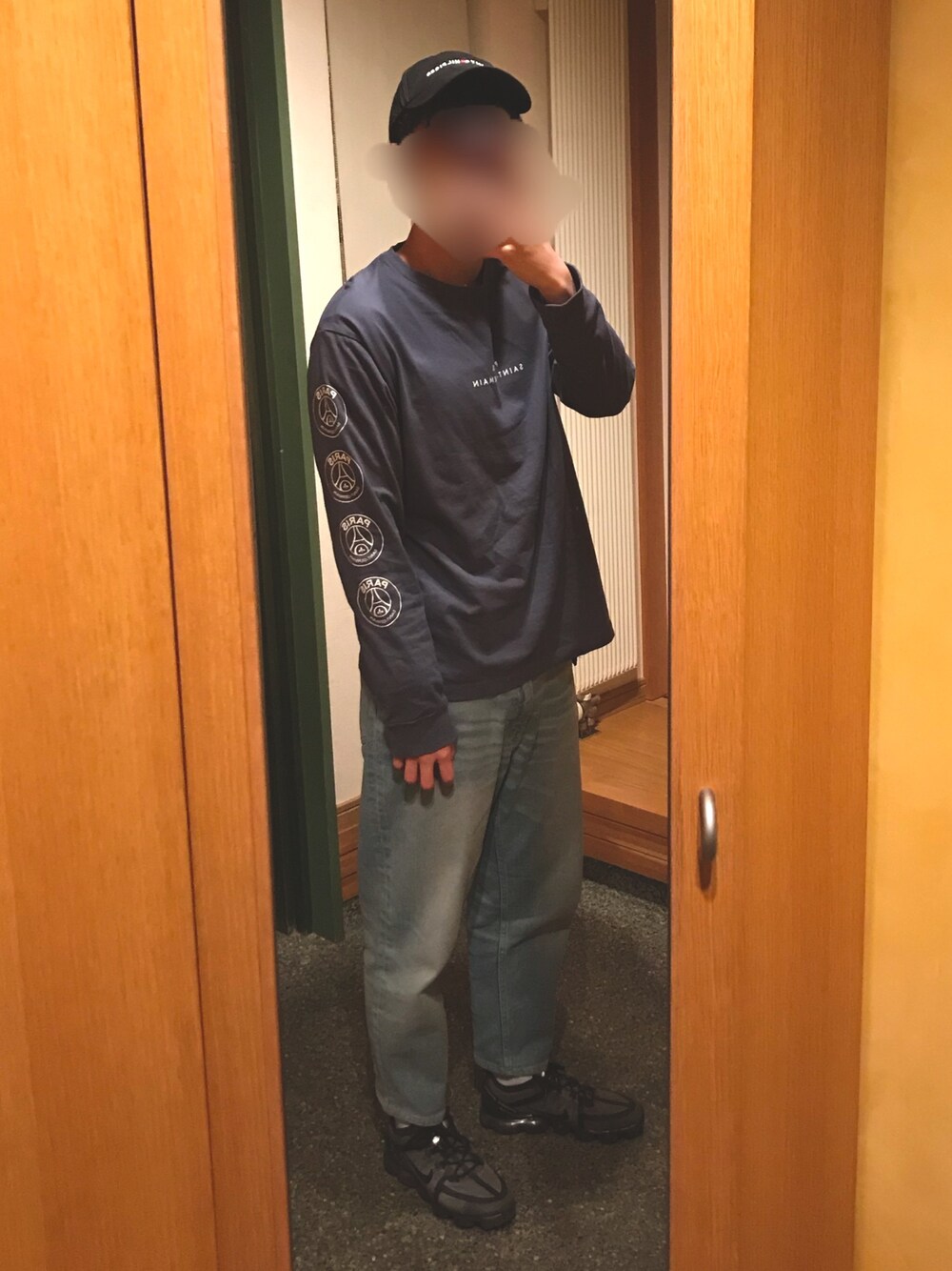 自宅期間、暇なので以前撮ったやつ投稿 ファッション的に好きなのはPSG スニーカーとカットソー同じ色