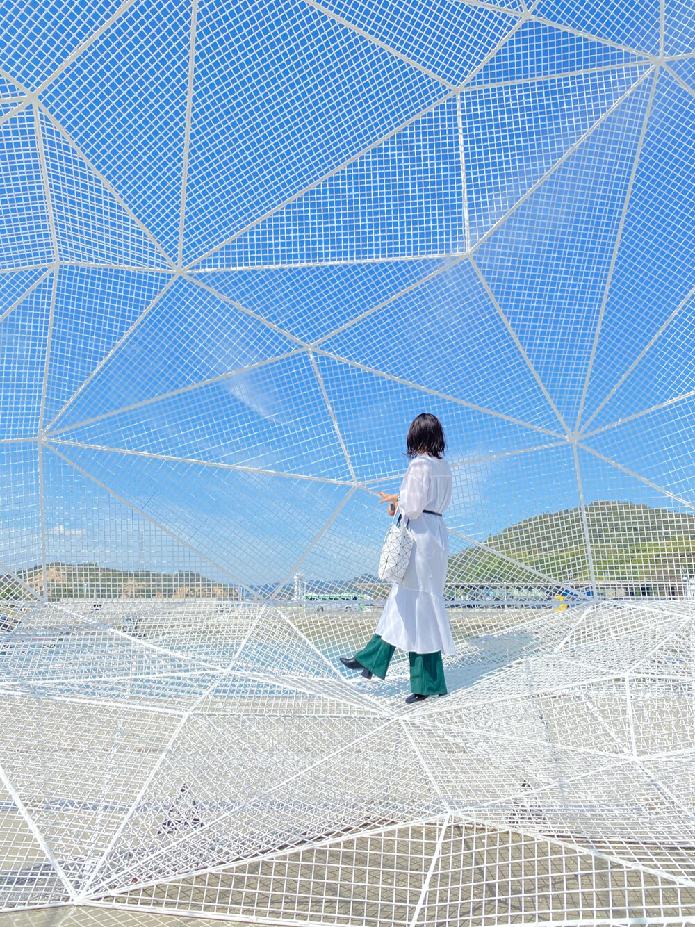 旅行のときは景色や風景が目立つようにカラーは抑えめで!でも足元の少し見えるグリーンが可愛いのも事実!🧚♂️🧃🌿🥑🍐📗🥗💚
